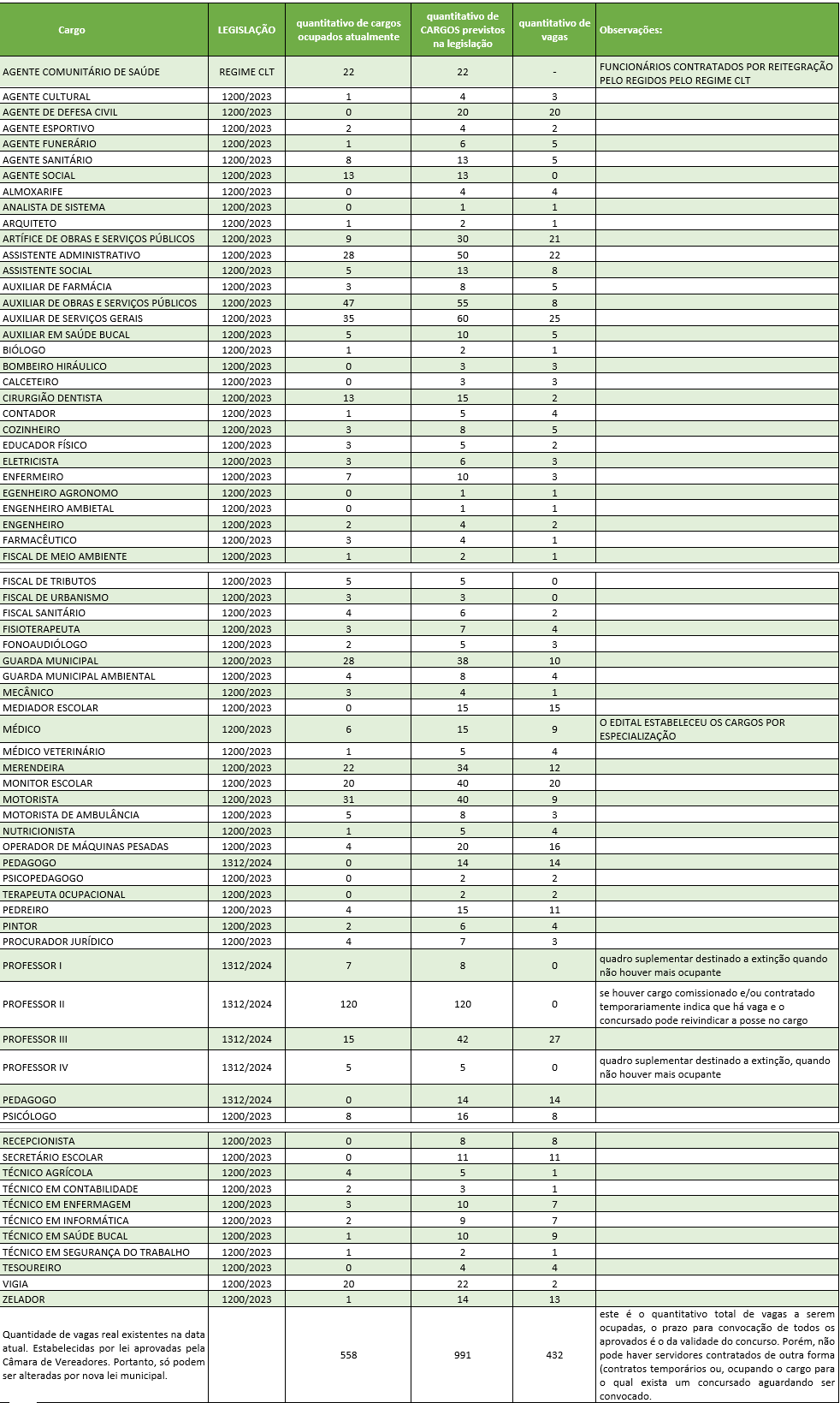 TODAS AS VAGAS DO EDITAL ESTÃO CLARAMENTE PREVISTAS NAS LEIS MUNICIPAIS?